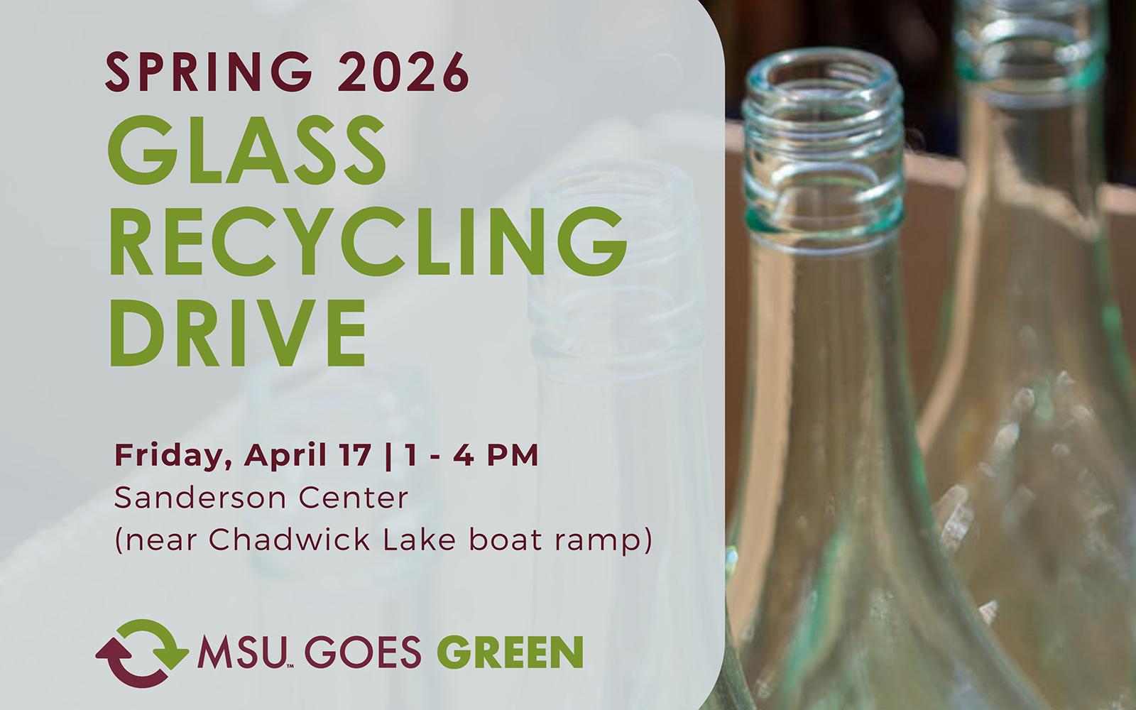 The 小黄书 Office of Sustainability will host the Spring Glass Recycling Drive on Apr. 17, from 1-4 p.m., at the Sanderson Center, near the Chadwick Lake boat ramp.